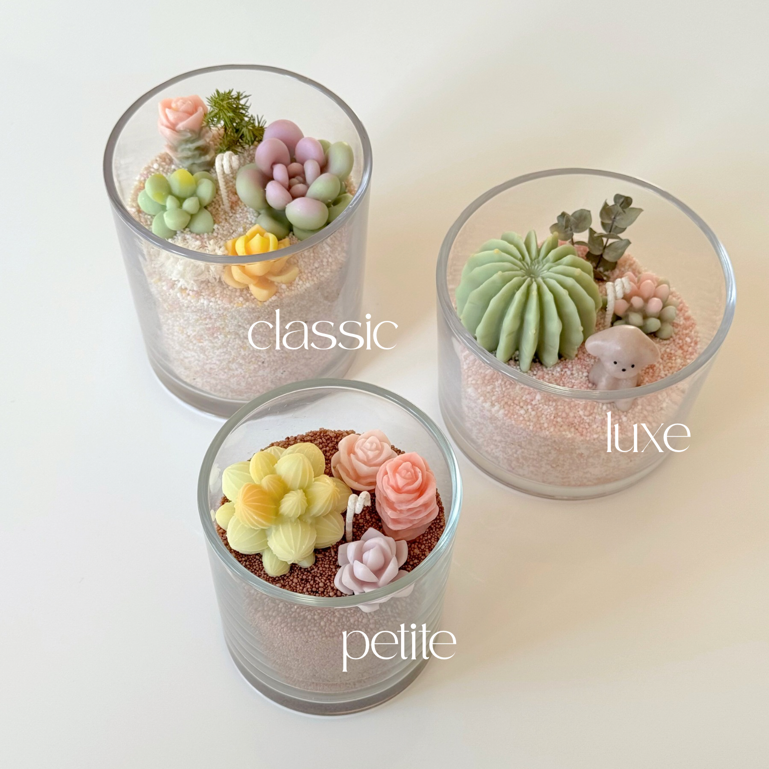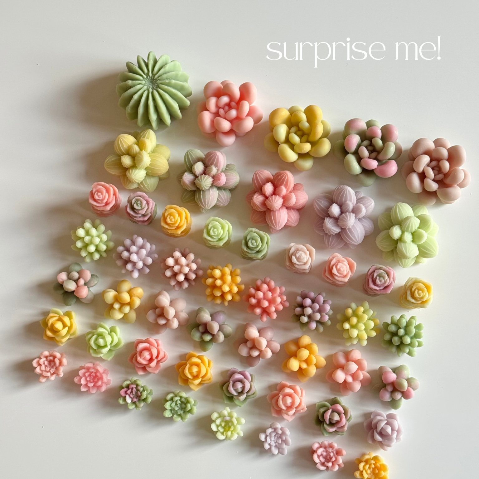- 4 Succulent shaped candles: Regular OR Surprise me! (5 succulent candles will be picked out for you.)