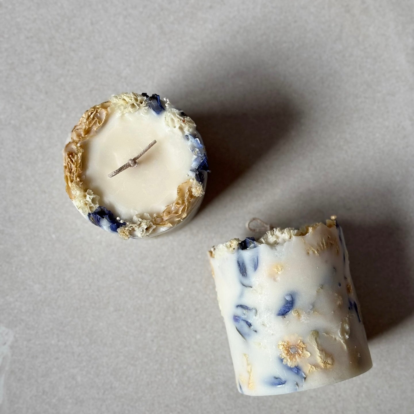 A botanical candle handcrafted with dried flowers and essential oils. Elegant and calming, it brings a touch of natural beauty and warmth to any space.